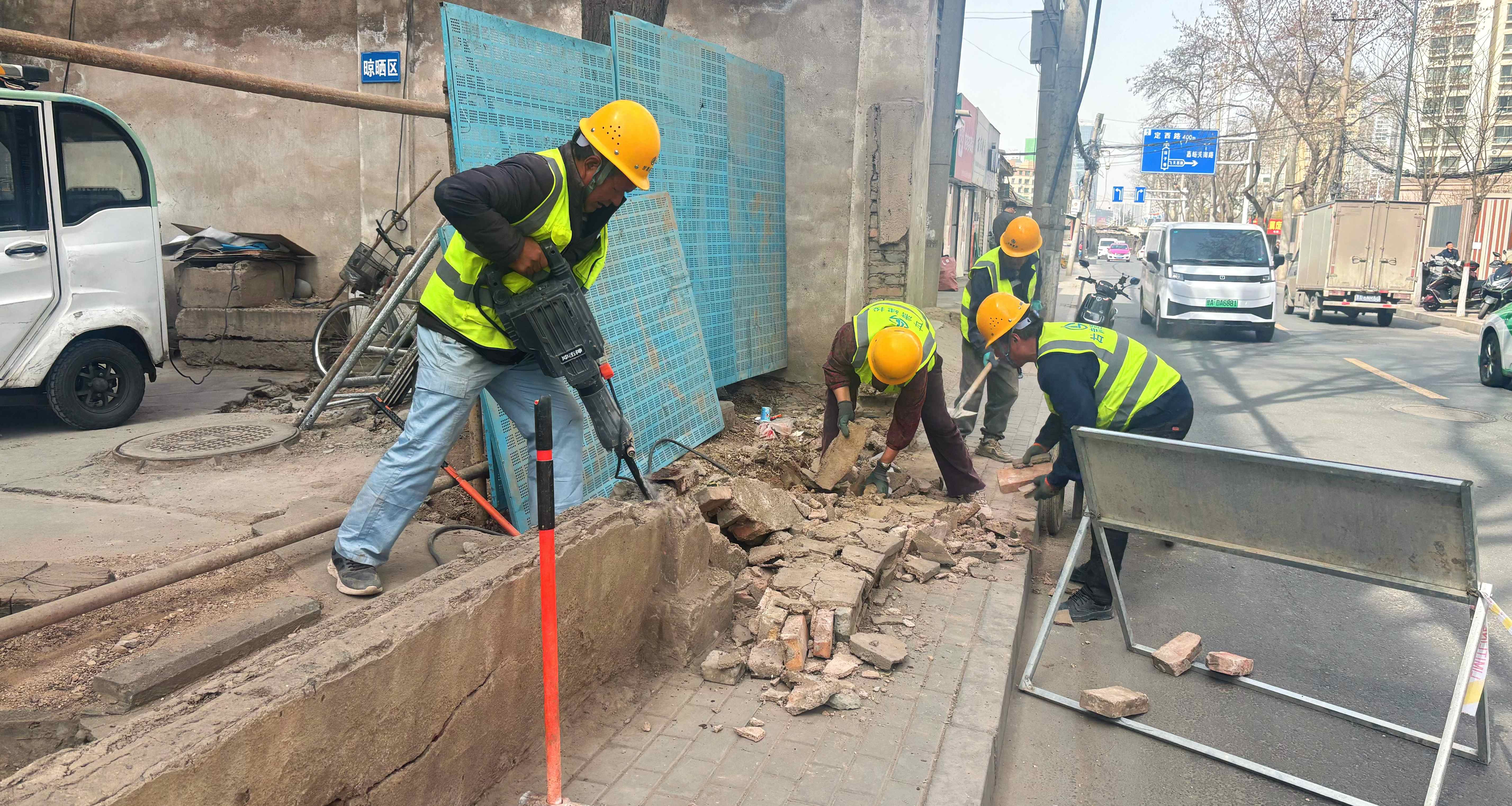 走进嘉峪关路、广武门、酒泉路等街道老旧小区改造现场,施工人员佩戴安全帽、规范着装,分头推进屋面防水、外墙保温、室外管沟、楼梯间粉刷、脚手架搭设等作业,切割、敲击、安装等工序有序进行,现场忙而不乱。